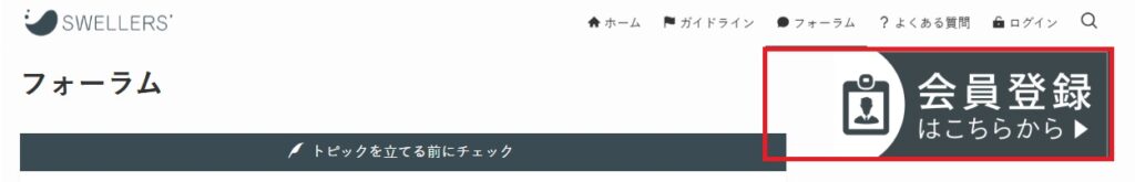①購入完了メールの『新規会員登録ページ』を押すか、公式ホームページの『フォーラム』から『会員登録はこちら』を選択