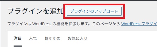 ①WordPressのダッシュボードから『プラグイン』→『プラグインを追加』→『プラグインのアップロード』を選択