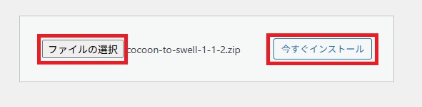 ③『ファイルの選択』で『SWELL本体』を選択し、『今すぐインストール』。同様に『SWELL CHILD(子テーマ)』をインストール